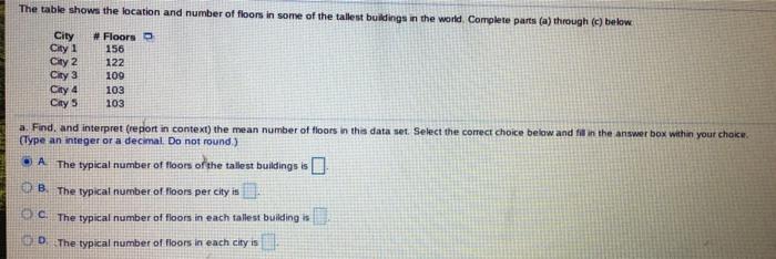 Solved The Table Shows The Location And Number Of Floors In Chegg Com